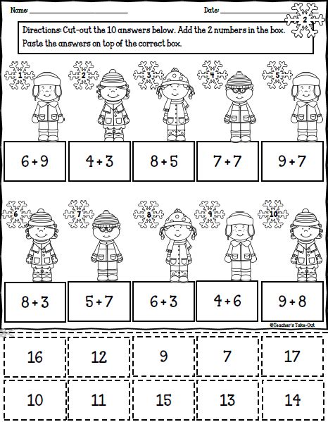 Printable Cut and Paste Addition Worksheet SupplyMe